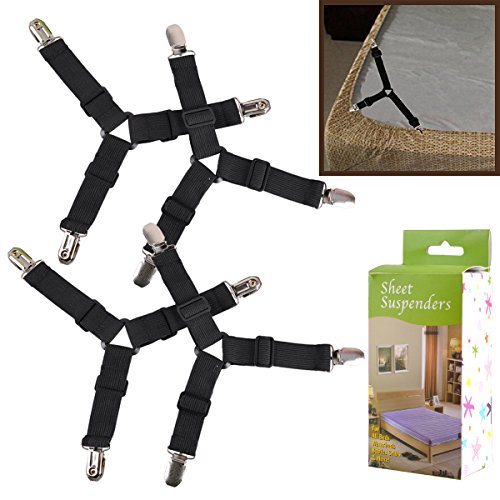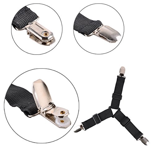 Keep those fitted sheets from sliding off at the corners. Made of durable elastic and nickel plated clamps,the clamps have a fabric protector so that no damage is caused to your bed sheet.