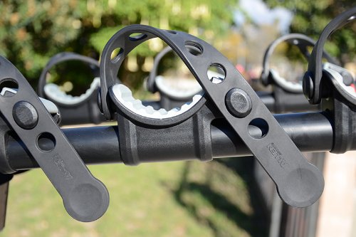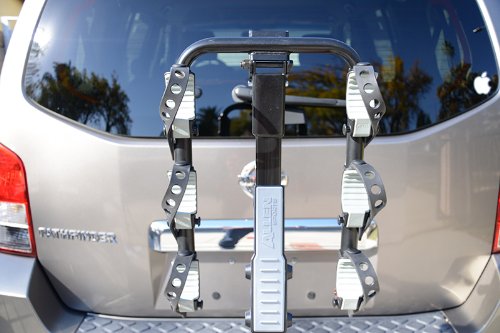 - Feature : Hitch insert fits either 1 1/4" or 2" receiver hitches / Quick set carry arms "snap" into place right out of the box / Dual compound tie-down cradles & quick set straps individually secure and protect bicycles / Internal tilt-away release allows for easy lift gate access / No-wobble bolt(s) eliminates movement of rack inside of hitch