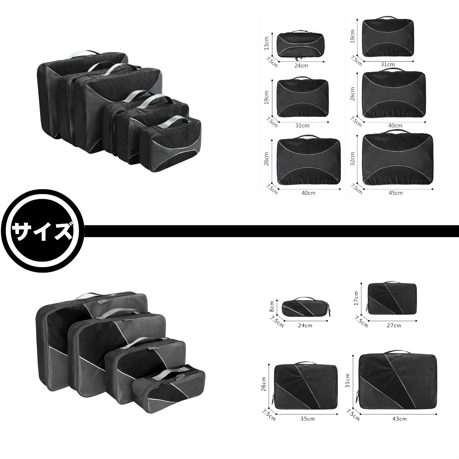 43 x 31 x 7.5 cm: Put a shirt, trousers, blouse and one piece etc;