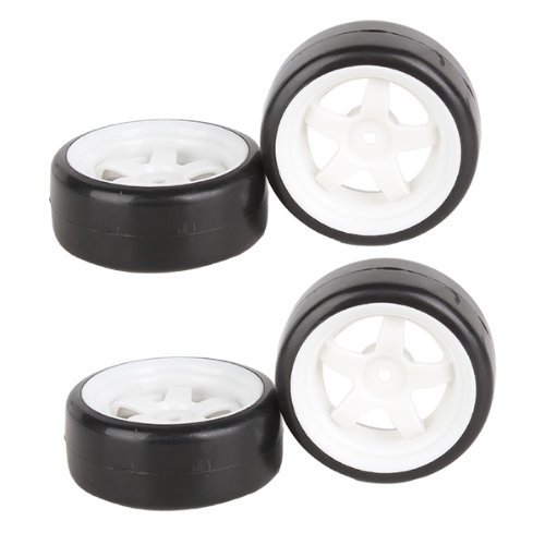 DN Durable 5 Spoke White Wheel Rim & Tyre Tires 20041 for RC 1:10 Drift Car (Pack Of 4)