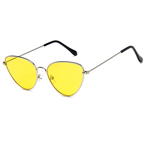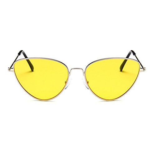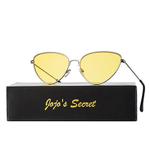 JOJO'S SECRET Cat Eye Mirrored Sunglasses,Colorful Lens Sunglasses For Women JS002 (Silver/Yellow, 2.2)