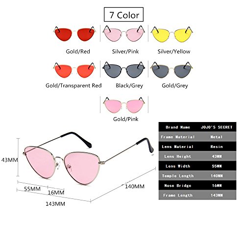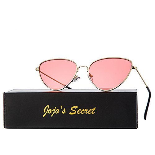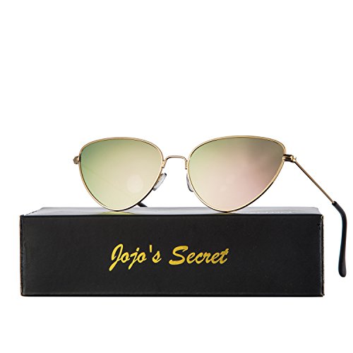 JOJO'S SECRET Cat Eye Mirrored Sunglasses,Colorful Lens Sunglasses For Women JS002 (Gold/Pink, 2.2)