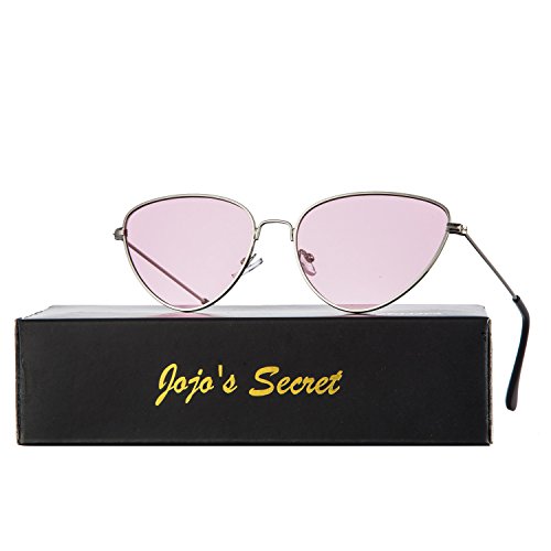 JOJO'S SECRET Cat Eye Mirrored Sunglasses,Colorful Lens Sunglasses For Women JS002 (Silver/Pink, 2.2)
