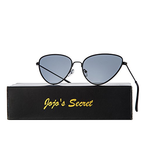 JOJO'S SECRET Cat Eye Mirrored Sunglasses,Colorful Lens Sunglasses For Women JS002 (Black/Grey, 2.2)