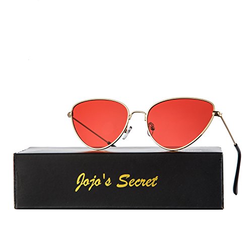 JOJO'S SECRET Cat Eye Mirrored Sunglasses,Colorful Lens Sunglasses For Women JS002 (Gold/Red, 2.2)