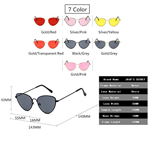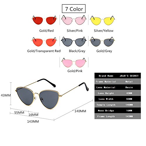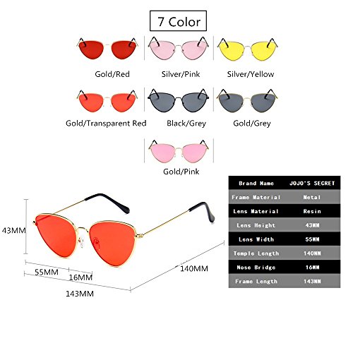JOJO'S SECRET Cat Eye Mirrored Sunglasses,Colorful Lens Sunglasses For Women JS002 (Gold/Transparent Red, 2.2)