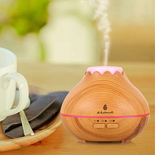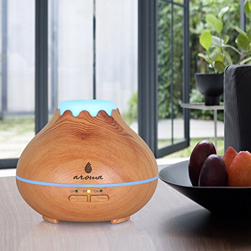 6 Aroma 150ml Aromatherapy Essential Oil Diffuser, Wood Grain Ultrasonic Aroma Cool Mist Humidifier Aroma Diffuser. 7-colors to choose or let it automatically changing colors.