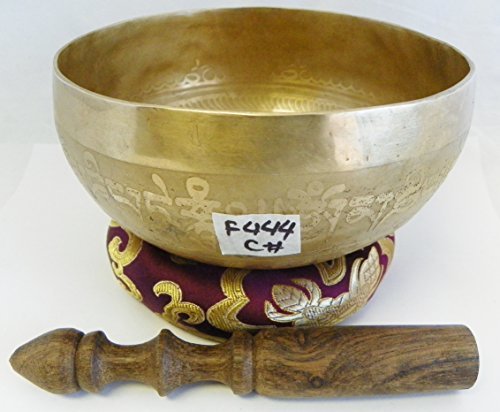 Studio : bowlsofnepal Publisher : bowlsofnepal Product Description Chakra Note: Root Chakra C# Size: 6 inch diameter 3.25 inch deep Weight of the bowl: 1.5 lb Stock #F444 Retail value: $299 Free wooden striker cushion ($14 value) is included with the bowl. Copy and paste this link to your browser to hear sound file of this bowl:creationexports.com/media/F444.mp3 Crafted by experience and traditional artisans of Nepal, this beautiful singing bowl produce a wonderful singing and rimming sounds for meditation and healing. A hand hammered bowl with rich harmonic soothing sounds, beautiful patina, tones and vibration it produce harmonized energetic sound and vibration help to be calm and stress free relaxing. A great item for meditation and yoga. Relax yourself and concentrate your mind on sound of the bowl, put the bowl in your end palm or on the cushion, if you are using for meditation try to keep it parallel to your heart, close your eyes, concentrate on upcoming sound, rub the rim(outside) of the bowl by a wooden striker, keep closing your eyes, concentrate on what you are hearing...a great HUM sound coming out from the bowl, the more you rub, the more vibration of sounds you will feel and hear, feel yourself relaxed and stress free. Or you can simply hit the bowl by wooden striker and listen the vibrating sound from the bowl which last for several minutes. This is how the Tibetans does in their day to day ceremonial life healing themselves. Singing bowl for meditation and healing: Singing bowls are one of the most powerful methods for meditation healing on spiritual, emotional, and physical levels. Vibration from bowls activate and balance your chakra, it will re-tune us to our own natural and healing vibration and help to dissolve energetic blockages, allowing us to return to balance. Sound coming out from the bowls will relax the body and mind and its sound frequencies stimulate the Chakras. Playing singing bowl with focused and positive thought bring more powerful results. 0