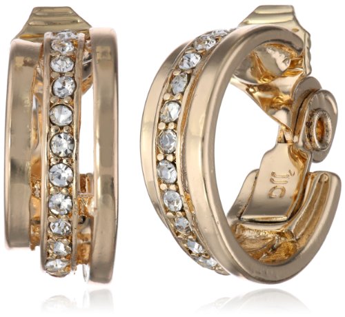 Napier "Classic Clips" Gold-Tone and Crystal C Hoop Earrings