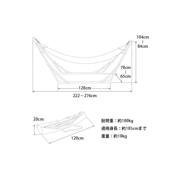 원본상품명: やわらか ハンモック 自立式 折りたたみ スタンド付き ワイド ポ?タブル 室? 室外 兼用 270cm ロング サイズ