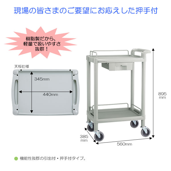 ●材質:棚板=ポリプロピレン、支柱・手摺・引出・キャップ・押手=ABS