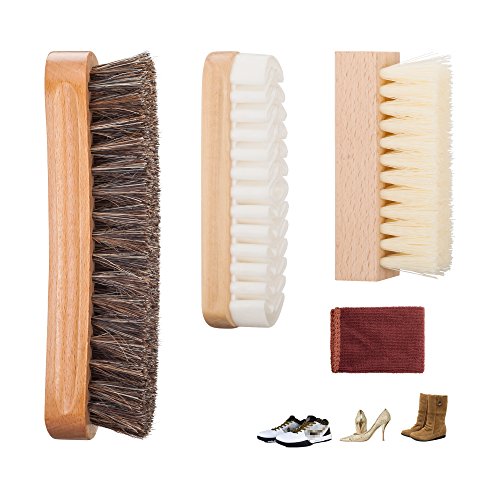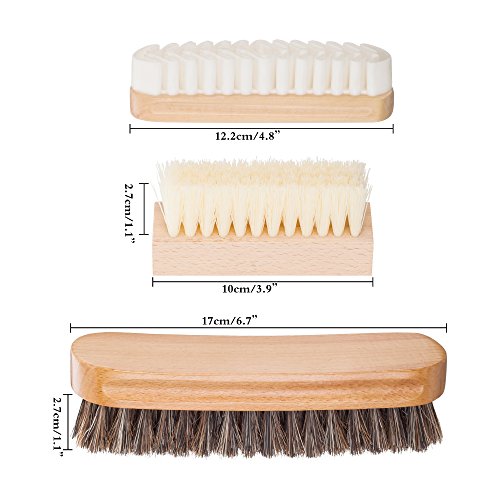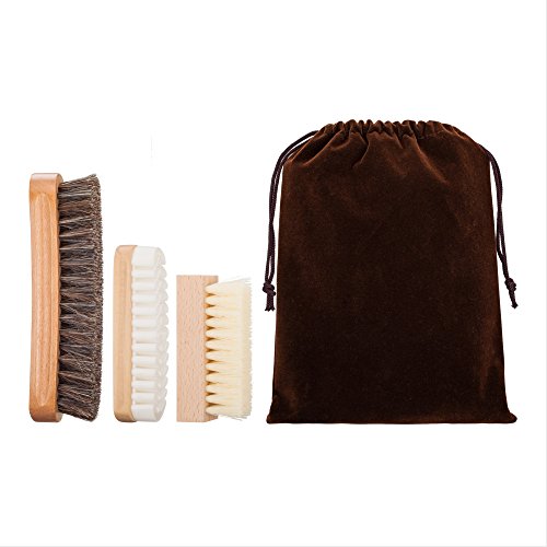 DESCRIPTION Inside Kit (3 in 1) 1 x Horsehair Shine Brush 1 x Crepe Suede and Nubuck Leather Brush 1 x Standard Synthetic Bristle Handcrafted wood block brush 1 x Pack Bag