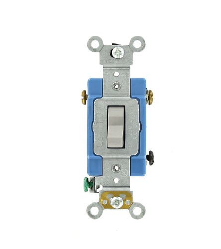 Leviton 1203-2GY 15 Amp, 120/277 Volt, Toggle 3-Way AC Quiet Switch, Extra Heavy Duty Grade, Self Grounding, Back and Side Wired, Gray