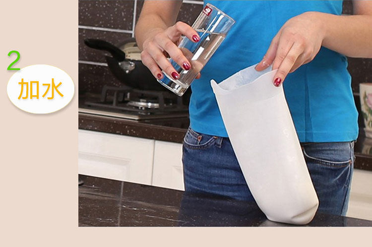 When used for dough mixing, knead flour and water according to a certain percentage (usually 2: 1 weight) into the bag, with the supporting tie rope in the bag around the mouth part of 3 to 4 laps, the rope caught Rope base groove, one hand holding the bag with a binding bag mouth parts, then the bag rubbing, rubbing, beating and other casual operation, about 3 to 5 minutes later, let go tight rope, the dough can be poured out.