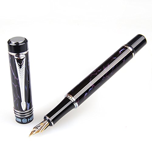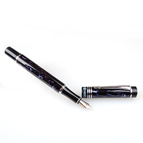 -. Title : New Pretty Hero Purple & Black Fountain Pen With Medium Nib Gift Box Birthday Present