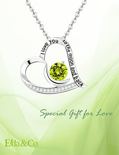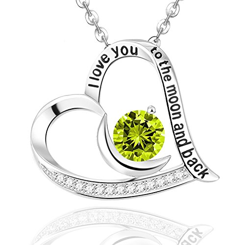 superior quality, 18K white gold plated over sterling silver, this delicate Peridot August Birthstone Love Heart Moon pendant Necklace and 20" rolo chain will never let you down.