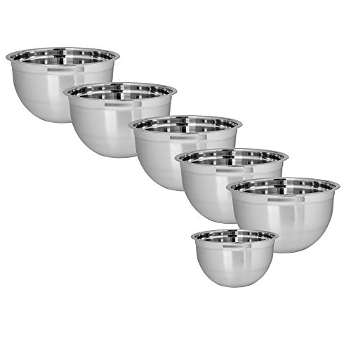 - Excellent Value - Set includes 6 stainless steel mixing bowls in two tone finish 14cm, 18cm, 22cm, 26cm & 30cm - Capacity: 0.75 Litre, 1.5 LItre, 3 Litre, 4 Litre, 5 Litre, 8 Litre