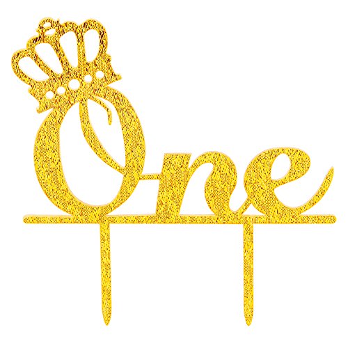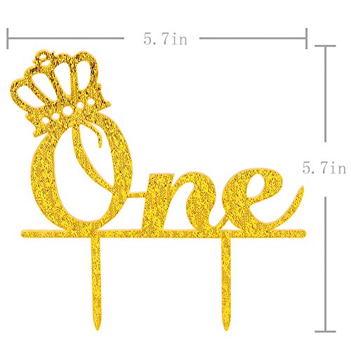 Karoo Jan One Cake Topper 1st First Birthday Cake Toppers, Crown Gold Glitter Baby Boy and Girl Party Decorations