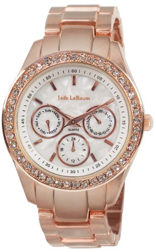 -. Title : Jade LeBaum Ladies Rose Gold Bracelet Boyfriend Watch Chunky Dial Large Face Crystal Bezel - JB202732G