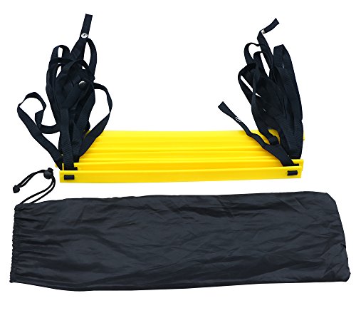 -. Feature : Ideal for indoor or outdoor practice like those on a hard ground surface or meadow / Adjustable 8 flat-rung meets various needs / A carry bag with string closure for easy transport / Total Length: 157.5inch Rung Size: 16.8×0.9×0.2 inch(L×W×H) / Material: PP and Nylon