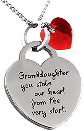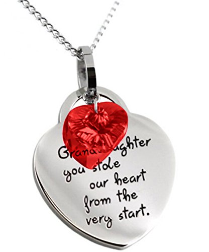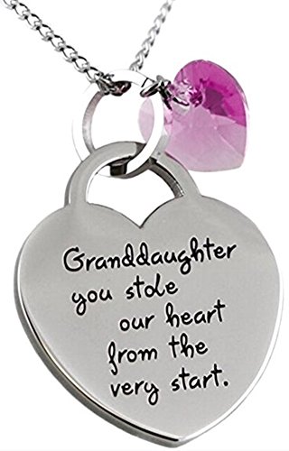 Pendant is engraved with "Granddaughter You Stole Our Heart From The Very Start"