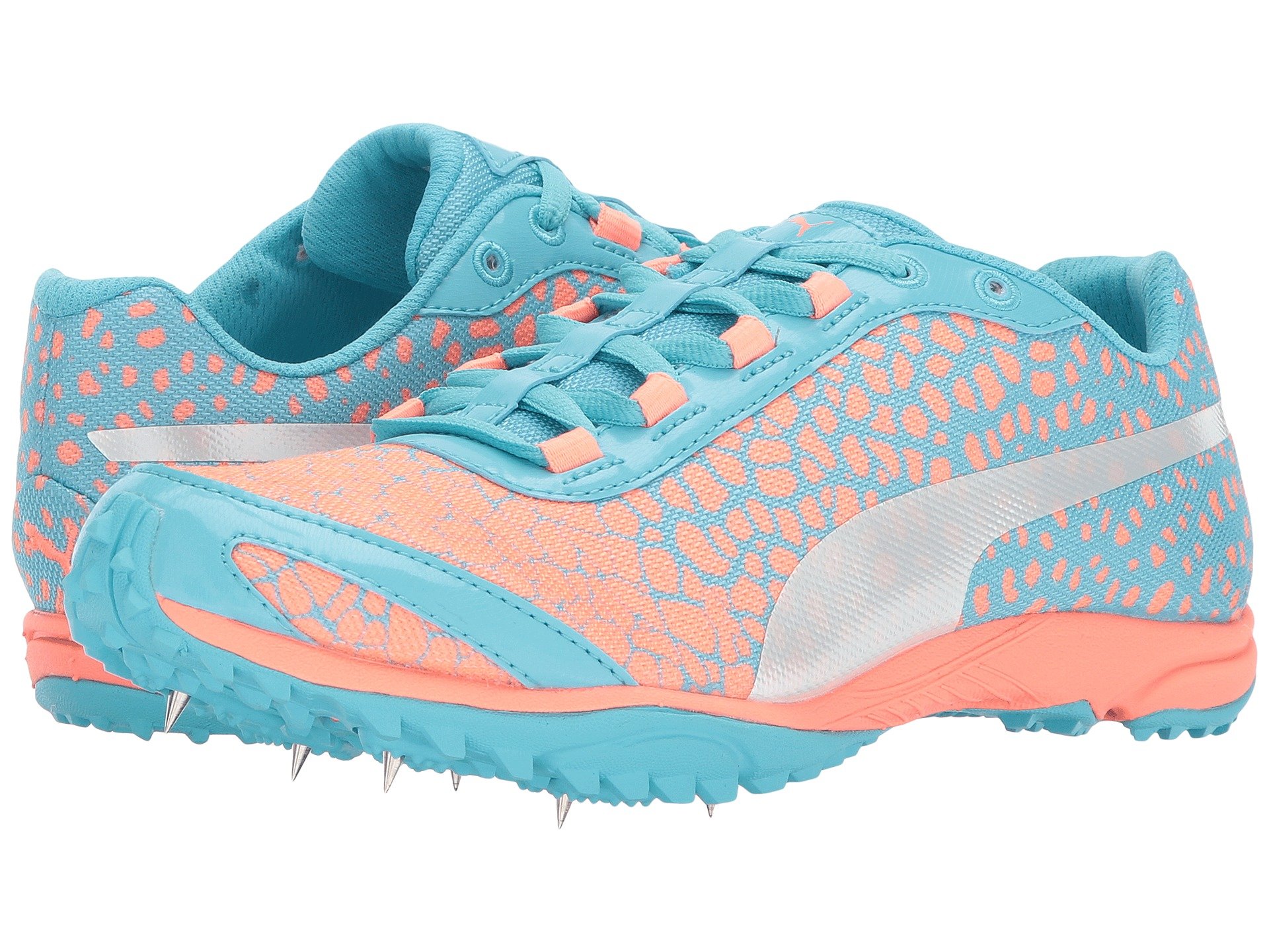 | Product Information SKU: #9037113Blast right past your competitors in the PUMA? evoSPEED Haraka 4 cross-country running shoes. Breathable mesh upper features PU overlays for added durability. Lace-up closure.Lightly padded tongue and collar. Soft textile lining.PUMA Formstrip at lateral and medial sides.Compression-molded EVA midsole for added cushioning and support.Abrasion-resistant outsole features lugs designed for maximum traction for up and downhill running.Six-spike design. Imported.Product measurements were taken using size 9, width B - Medium. Please note that measurements may vary by size.Weight of footwear is based on a single item, not a pair.Measurements: Weight: 7 oz |
