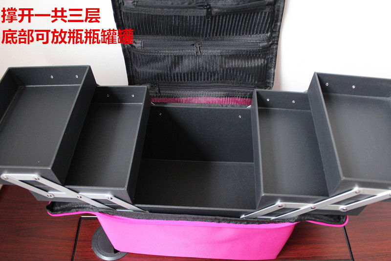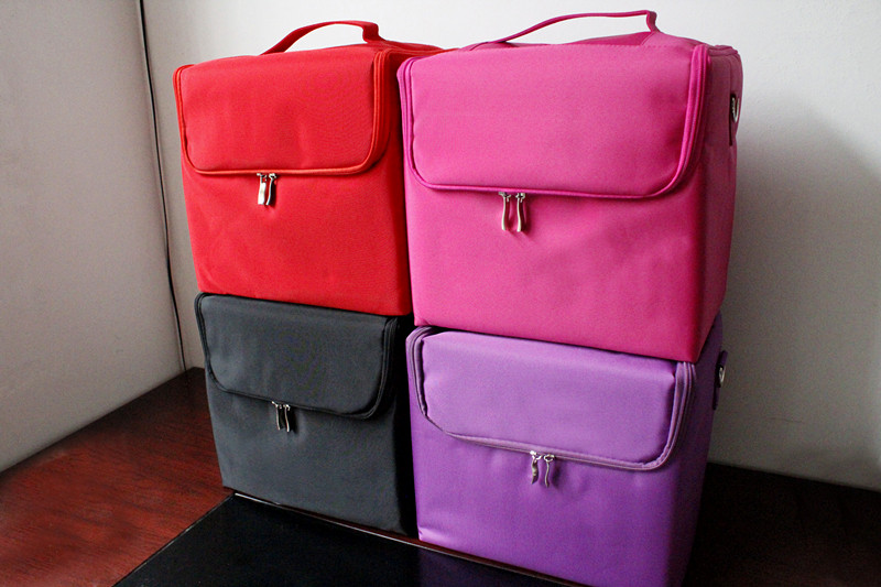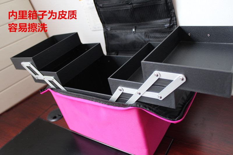 此款化妆箱为专业跟妆师,化妆师,影楼化妆师专用专业化妆包,新娘婚礼跟妆箱,外面为布艺,有着非常好的耐磨性,容易打理等特性,内在是三层大容量,因价格低廉,受到很MM的大爱,尤其是初学者的最爱。