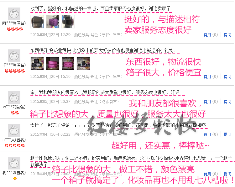 [面料]外皮分为光面防水牛津布和升级防水两种。因面料不一样,价格也略有所不同。内盒为木质,木质外面包的是防水皮革,内盒只能防少量水哟!
