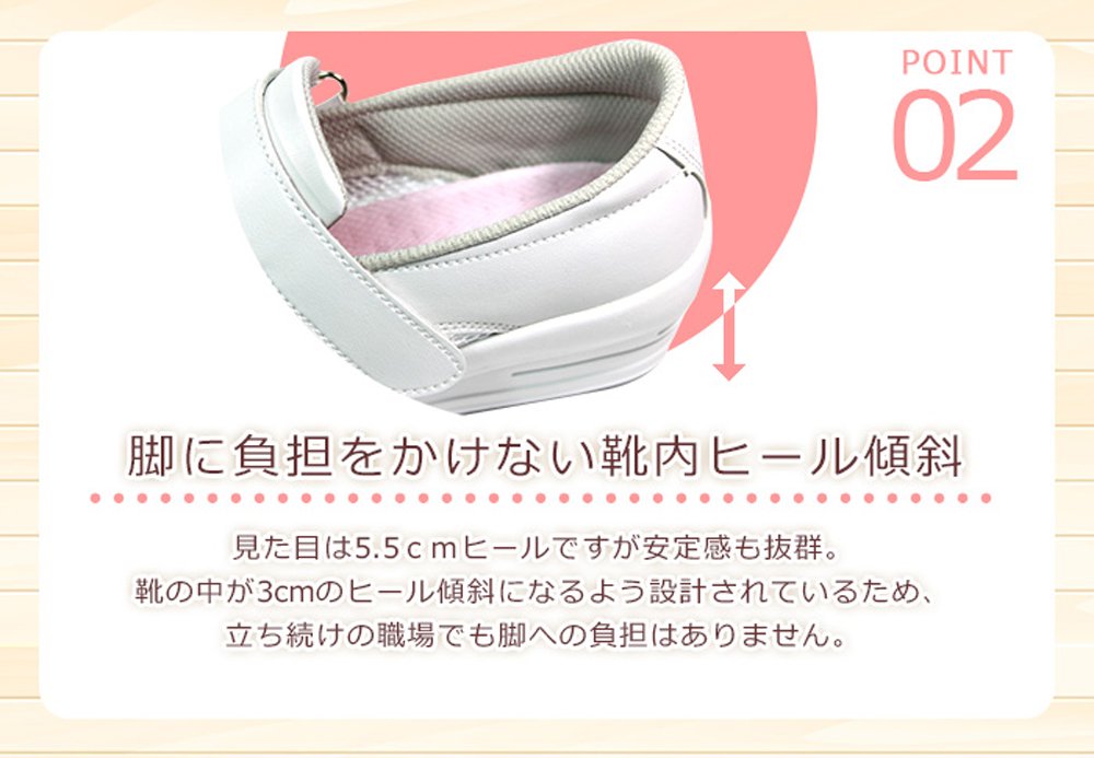 Since the inside of the shoe is adjusted to the heel tilt which does not burden the feet on the foot, ease of walking is perfect.