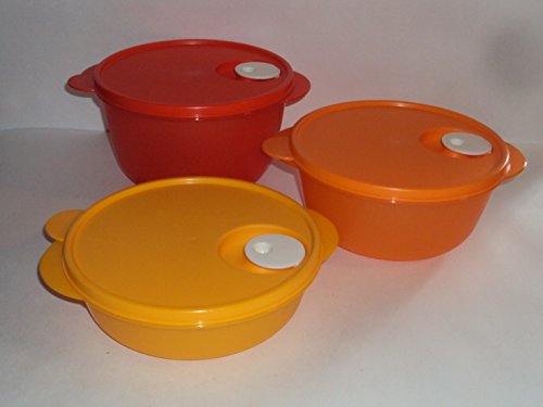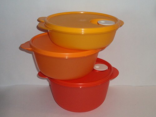 Tupperware Crystalwave 3 Piece Microwave Bowl Set Shades of Orange