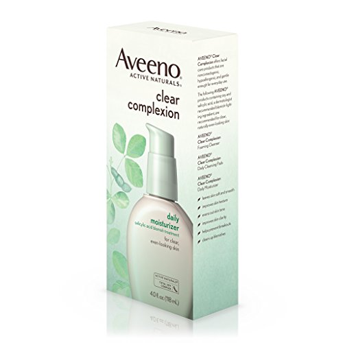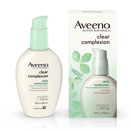 Aveeno Clear Complexion Daily Moisturizer helps prevent breakouts and helps clear up blemishes. Gentle enough for daily use, the formula contains salicylic acid--a proven acne-fighting ingredient—to help clear and prevent breakouts. Active Naturals Total Soy Complex helps even out skin tone and texture to improve your complexion and help skin look and feel healthier. This fast-absorbing moisturizer leaves skin feeling soft and smooth and is oil-free, non-comedogenic, and hypoallergenic.Feature