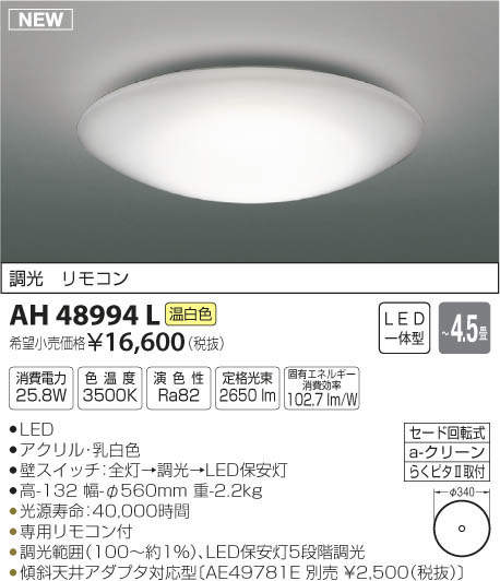 ●傾斜天井アダプタ対応型〔AE49781E別売 \2,500(税抜)〕