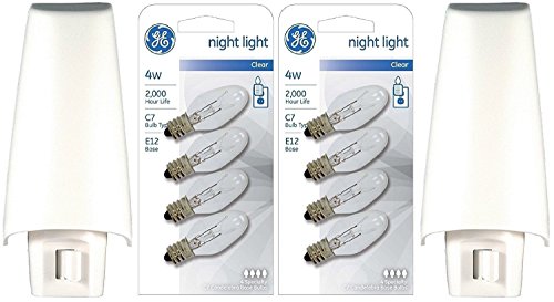 GE White Shade Incandescent Set of 2 Night Lights Plus 8 Replacement bulbs