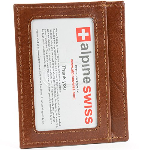Alpine Swiss Men's Leather Money Clip Front Pocket Wallet Brown