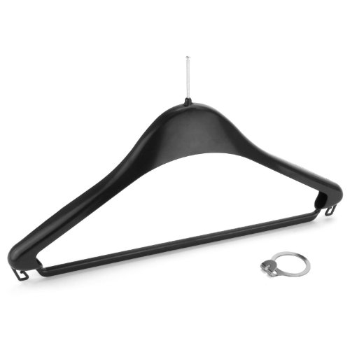 -. Title : Hangerworld Pack of 50 Black Plastic Hotel Clothes Coat Hanger with Pants/Skirt Bar & Metal Security Ring - 17 Inches