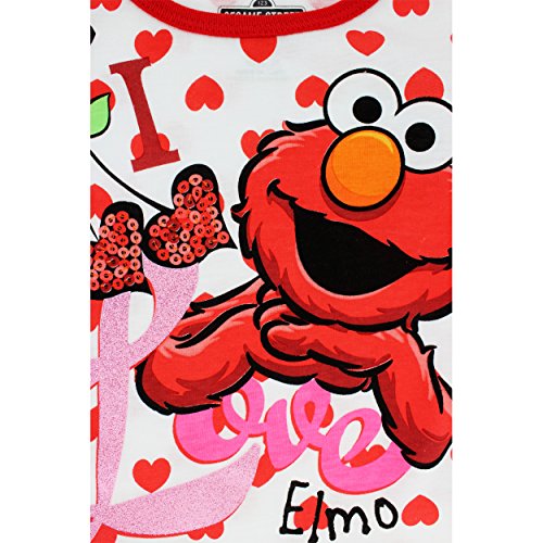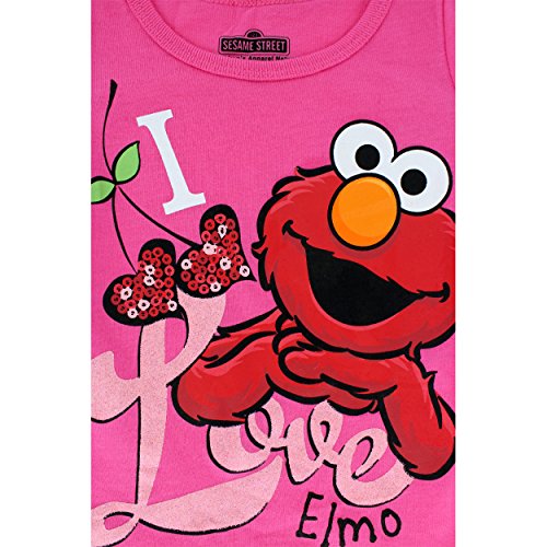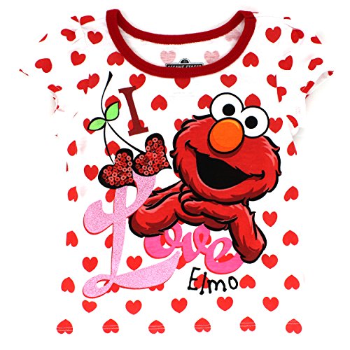 -. Binding : Apparel -. Brand : Sesame Street -. Color : Multi -. Department : girls -. Feature : Extra soft, lightweight and easy to care for; Screen printed graphics / Taped collar; Double stitched hems; Short cap style sleeves / Features glittered Sesame Street Elmo's World graphics / Runs small, order size up -. PackageQuantity : 1 -. ProductGroup : Apparel -. ProductTypeName : SHIRT -. Title : Sesame Street Elmo Toddler Girls Short Sleeve Tee