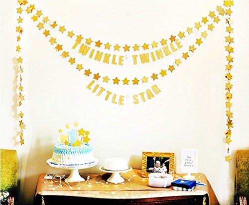 -. Title : Fecedy 2pcs Gold Sparkling Star Garland Bunting for Baby shower,Birthday party Wedding Party 13 feet