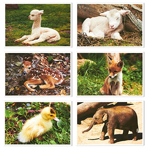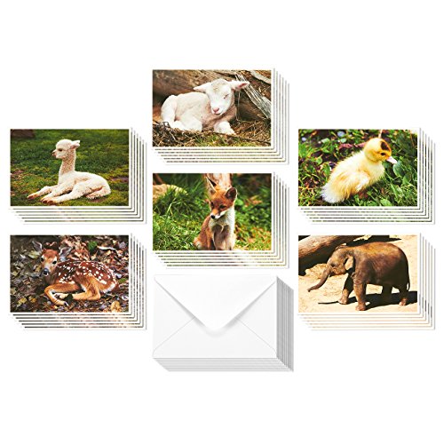 36 Pack All Occasion Cute Baby Animals Design Greeting Cards, 6 Assorted Baby Animal Designs, Bulk Box Set Note Cards Variety Assortment, Envelopes Included, 4 x 6 Inches