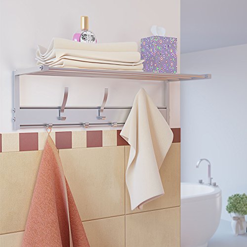 - ✪ GREAT STORAGE CAPACITY – Besides the sufficient number of hooks, the high-quality rail hanger features an additional shelf that will allow you to keep handbags, hats, accessories and other necessary trifles