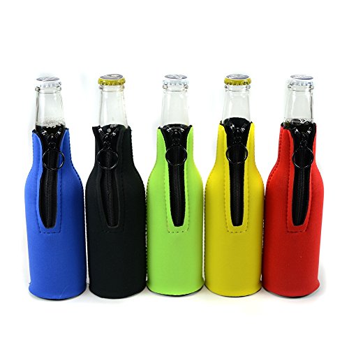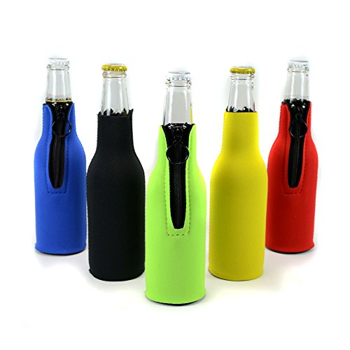 330 ML Insulated Neoprene Beer Bottle Cooler Sleeves with Zipper,All Color 5-Pack