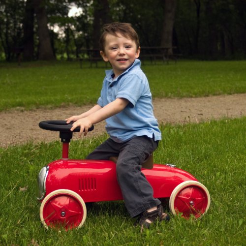 - Feature : Retro-style push car ideal for children ages 1 to 3 / Weight capacity of 42 lbs. / Sleek metal body in choice of several colors / Front wheel base is 13 inches wide for a smooth, stable ride / Steering wheel swivels and allows for safe wide turns