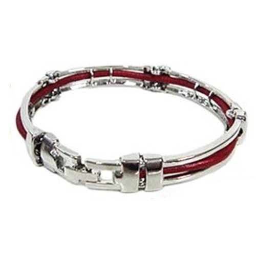 -. Title : (エイト) 8(eight)レザー付きシルバーブレスレットバングル革 レッド