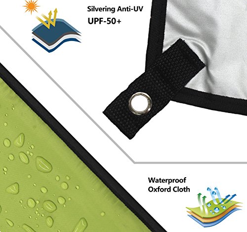 Made with sturdy yet lightweight, water resistant 190T embossed fabric polyester, seam taped, extra durable, enable good tear-resistance and excellent waterproof capabilities.Providing generous protection from wind and rain; Anti-uv, protecting you well.