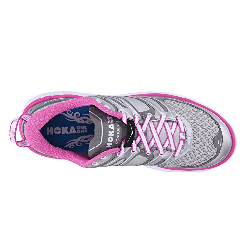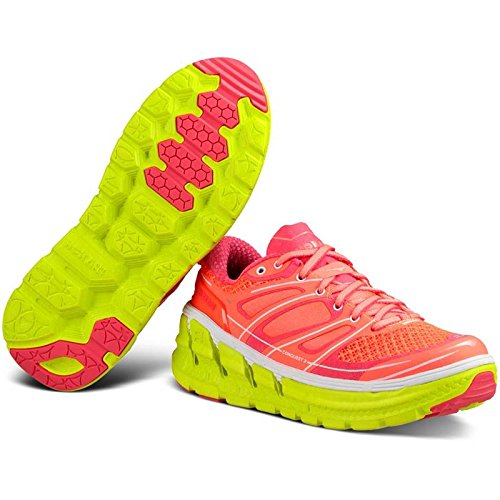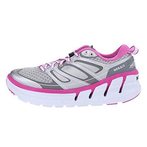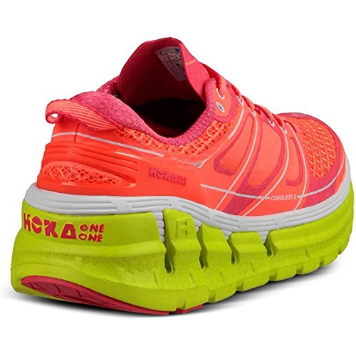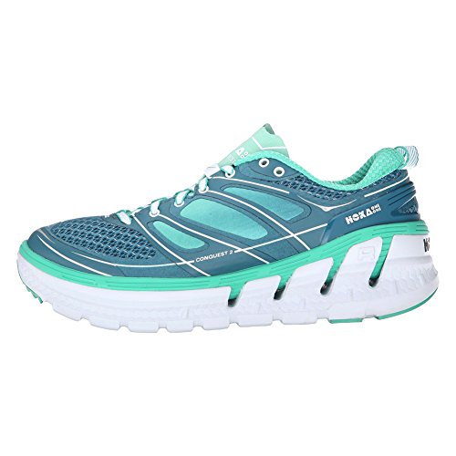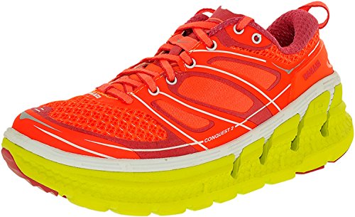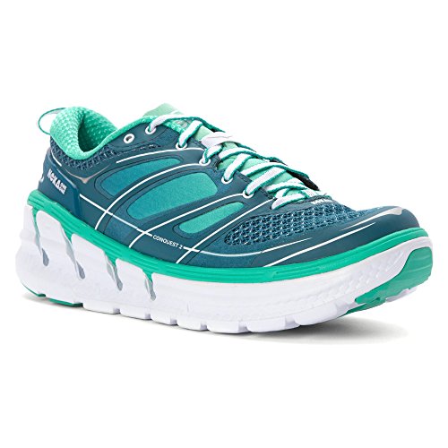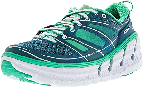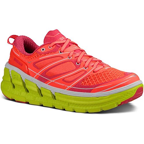 Product Description Applied midsole geometry makes the CONQUEST 2 the most responsive performance road shoe in the HOKA ONE ONE range. A suspension midsole built with an EVA top-layer provides the signature HOKA cushioning, while the RMAT® body provides a perfect blend of underfoot support and a responsive ride. 0