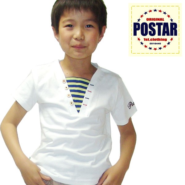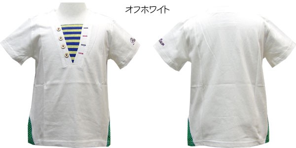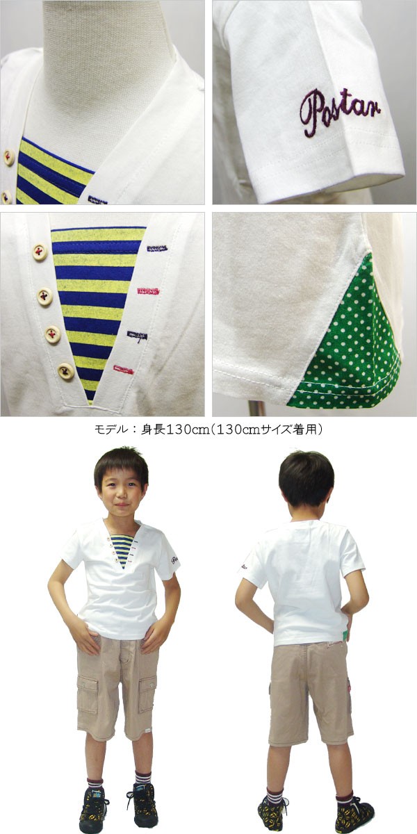 コメント:衿ボタンがポイント!重ね着風Tシャツ。※80~95cmは左肩スナップボタン付きです。
