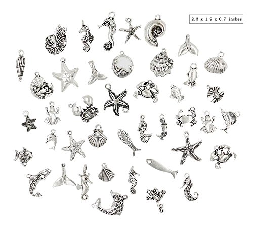 40pcs Ocean Fish & Sea Creatures Mix Antique Silver Charm Pendant Connector for Making Bracelet and Necklace DIY Vintage Jewelry Supply Lot Wholesale