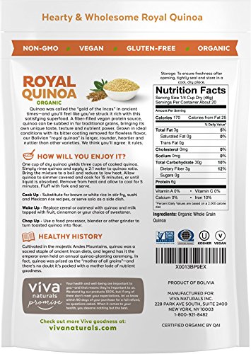 Viva Naturals Organic Quinoa, 100% Royal Bolivian Whole Grain, 2 lb Bag