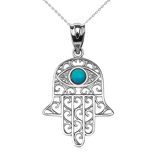 -. Feature : Hamsa Hand With Turquoise Evil Eye pendant necklace / faithfully handcrafted in Sterling Silver in fine polished finish / comes with free special gift packaging / made in the USA yet offered at factory direct jewelry P.R.Ice / ships from the manufacturer directly to the customers