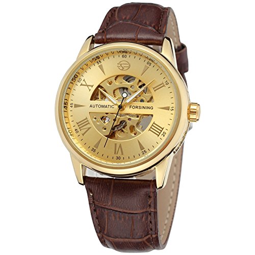 -. Binding : Watch -. Brand : GuTe Mechanical -. Department : Mens -. EAN : 6661200376575 -. Feature : GuTe-picked FORSINING Casual Dress Style self-wind Wristwatch for Gentlemen / Golden Face Skeleton See-through with Roman Numerals / Gloss Gold tone Argyle Pattern Watch Case 41mm Diameter Dark Brown Faux Leather Strap / Luminous Hands. Automatic Rotor in the Back Cover Case. Also you may do hand-winding by the Watch Crown / This Watch ONLY can Do Splash-proof. Not exactly water-resistant actually. Come with GuTe minimalist Cardboard Watchbox with No Instruction. ECO-Packaging -. Label : GuTe Trade -. Manufacturer : GuTe Trade -. MPN : JWH185-GBR -. PackageQuantity : 1 -. PartNumber : JWH185-GBR -. ProductGroup : Watch -. ProductTypeName : WATCH -. Publisher : GuTe Trade -. Studio : GuTe Trade -. Title : GuTe Elegant Gold Tone Luminous Mens Automatic Mechanical Wristwatch Dark Brown Strap