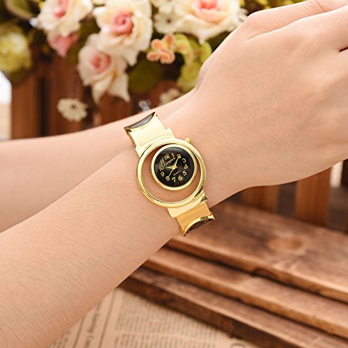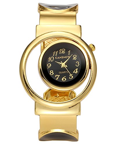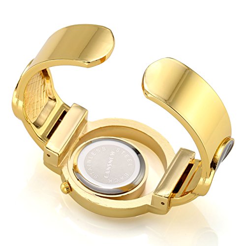 Top Plaza Womens Fashion Analog Quartz Gold Tone Bangle Cuff Bracelet Wrist Watch, Unique Hollow Case Design